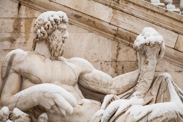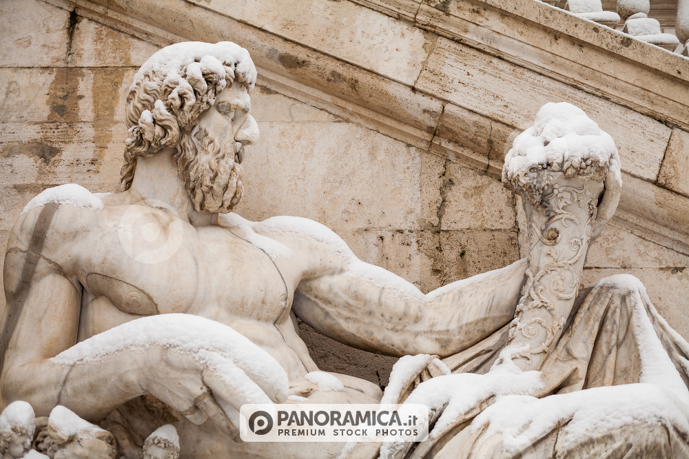 A lovely day of snow in Rome, Italy, 26th February 2018: a beautiful view of Fontana della Dea Roma under the snow