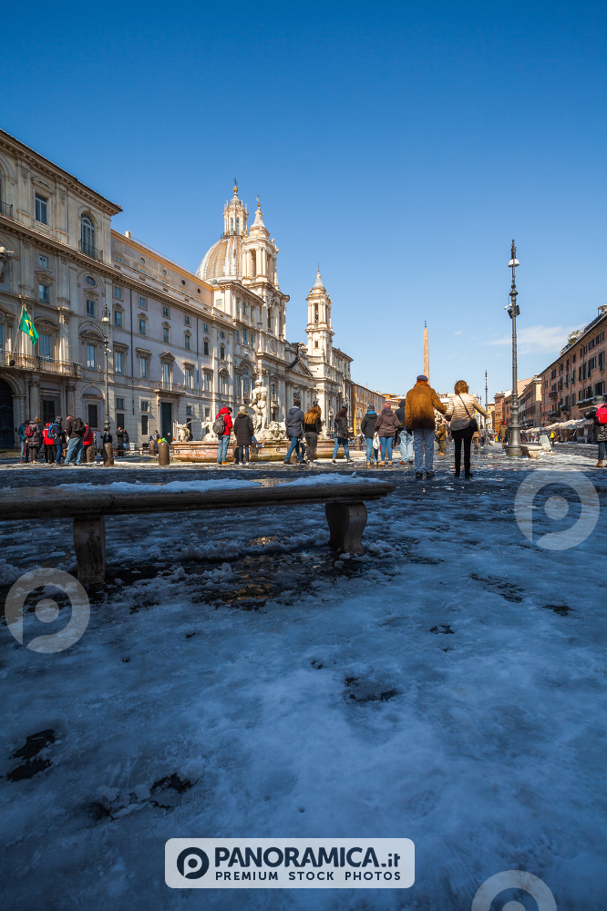 A lovely day of snow in Rome, Italy, 26th February 2018: a beautiful view of Navona Square under the snow