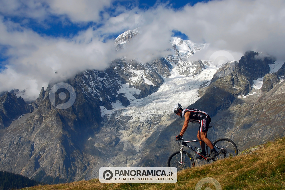 Monte Bianco e ghiacciao della Brenva sullo sfondo, nei pressi del Rifugio Bertone