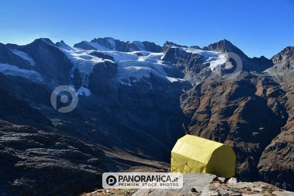 Bivacco Money in autunno, il Ghiacciaio della Tribolazione ed il Gran Paradiso sullo sfondo