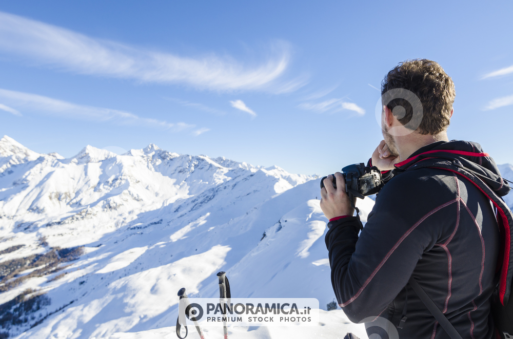 Escursionista ammira il paesaggio da Pointe de la Pierre, Ozein, Valle d'Aosta