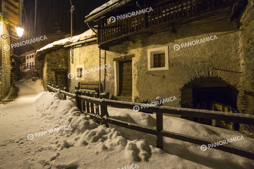 Il Borgo di Challien (Antey Saint Andrè) alla sera mentre nevic