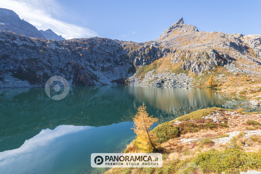 Il Lago di Vercoche nel paesaggio autunnale, al sommo del Vallone della Legna (Valle di Champorcher, Valle d'Aosta)