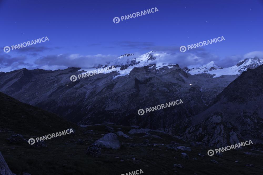 Le luci dei rifugi ai piedi del Gran Paradiso