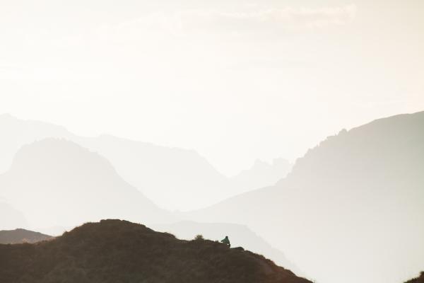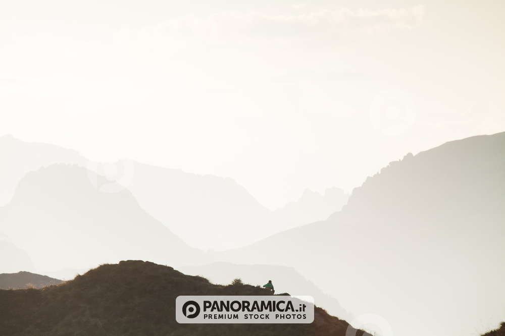 Man staring at Giau Pass, Dolomites, Veneto, Italy
