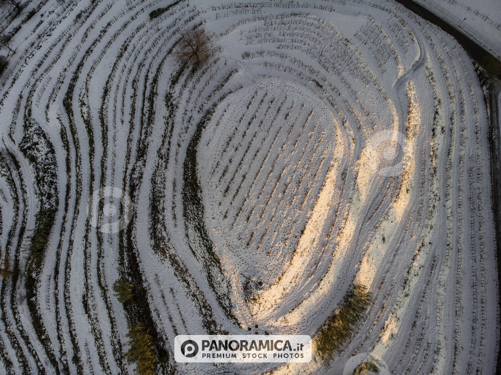 Montevecchia, vigneto a terrazza con neve