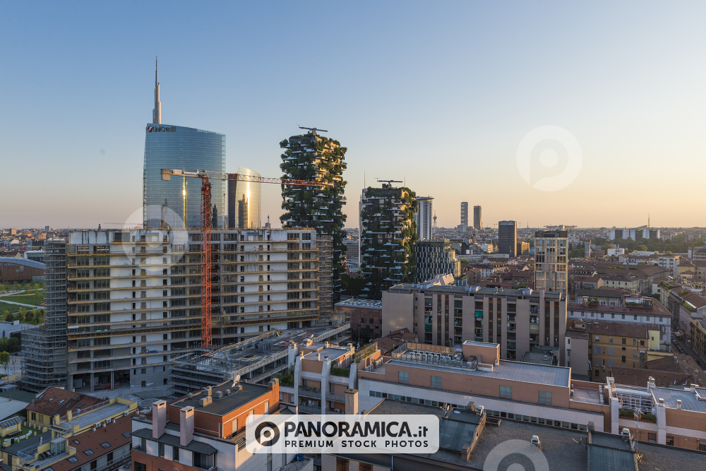 Palazzi di Porta Nuova al tramonto e cantiere del Rasoio