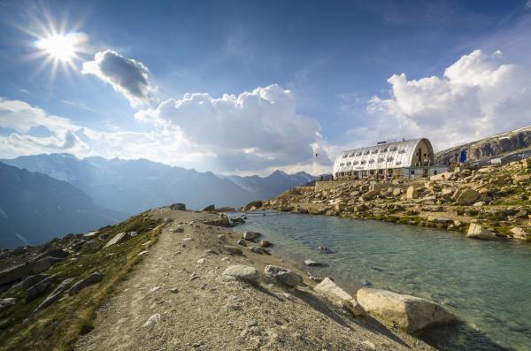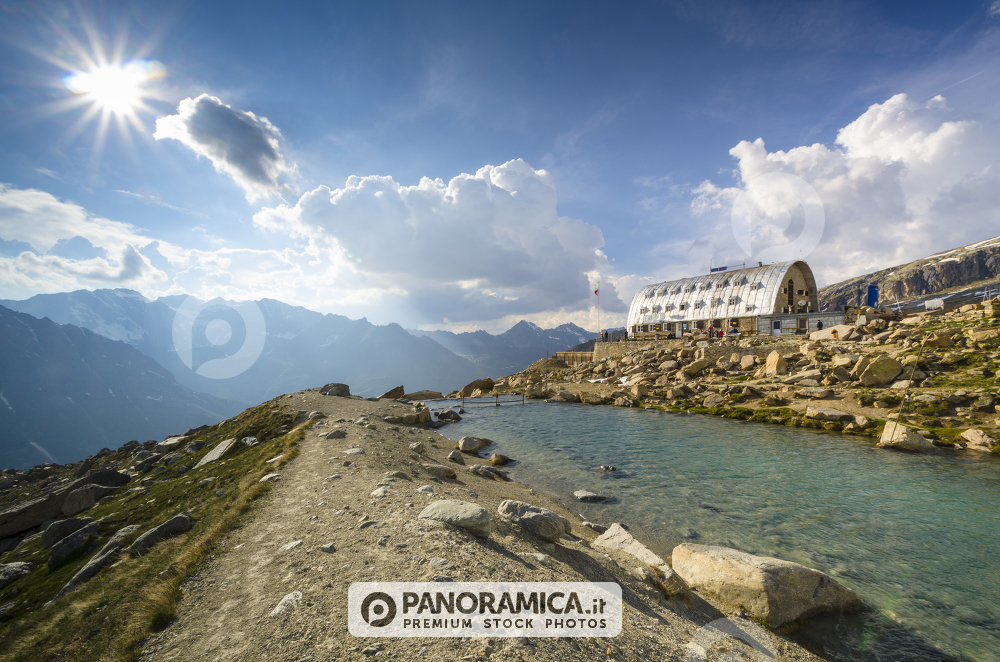 Il laghetto di Moncorvè ed il Rifugio Vittorio Emanuele nel tardo pomeriggio, Valsavarenche, Parco Nazionale Gran Paradiso, Valle d'Aosta
