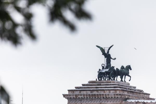 A lovely day of snow in Rome, Italy, 26th February 2018: a beautiful view of Altare della Patria near the Colosseum under the snow