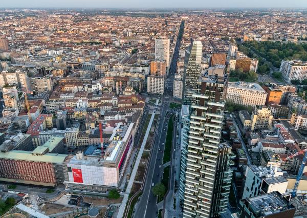 Veduta aerea di Viale della Liberazione, con Torre Solaria in primo piano