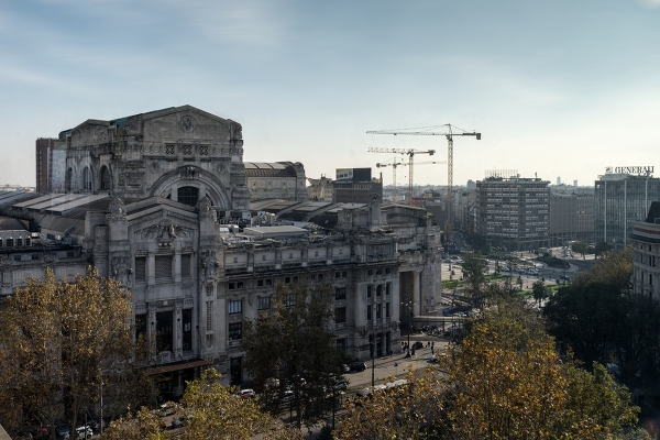 Binari della Stazione Centrale e quartiere Adriano all'orizzonte